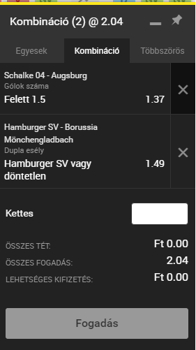 A mai napra két mérkőzést választottunk a Bundesligából, pontosabban a Schalke-Augsburg, valamint a Hamburg-Mönchengladblach mérkőzéseket.
